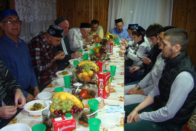 Бүген, ягъни 30 майда Казандагы «Сөләйман” мәчетендә танылган галим, тарих фәннәре докторы, профессор Индус Таһировның улы Илдар ифтар мәҗлесе уздырды. Илдар Индус улы Таһиров “Сөләйман” мәчетенә реконструкцияләр үткәргәндә байтак булышты. Аерым алганда, әлеге гыйбадәтханәнең түбәсен япканда аның көче шактый күп керде. Бүгенге мәҗлесне оештырганда аның туганы Эмиль Илче улы Таһировның да теләктәшлеге булды. Билгеле булганча, бүген Казаныбызда җил-давыл, хәтта гарасат җилләре узып китте. Аның башкалабыздагы кайбер биналарның түбәсен алып ташлаганлыгы да мәгълүм булды. “Сездә ут сүнмәдеме?”-дип тә хәлләребезне белеп торды Эмиль әфәнде. Аллага шөкер, андый бәла-казалар бүген безне читләтеп узды. Авыз ачу мәҗлесебез дә нәкъ үз вакытында башланды. Илдар әфәнде мәчетебезгә бик матур кәләпүшләр кидереп, үзенең өч улын да алып килгән иде. Без алар белән ахшам намазын укып, ифтар мәҗлесендә катнаштык. Ә Дамир хәзрәт Мәрвәров бу гаиләгә бәхет-шатлык теләп дога кылды.